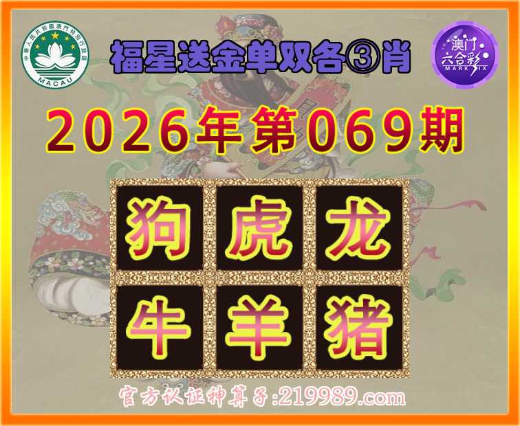 069期:『福星送金』 ♠️单双各③肖♠️【狗.虎.龙.牛.羊.猪】开:00准