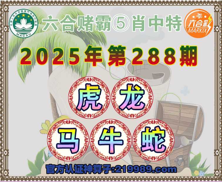 288期: ☝️『六合赌霸』 ☝️⑤肖中特☝️【虎..马.牛.蛇】开:龙14