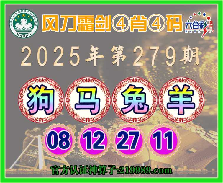 279期:『风刀霜剑』 🌅④肖④码🌅【狗马羊】【08.12.27.11】开:兔27