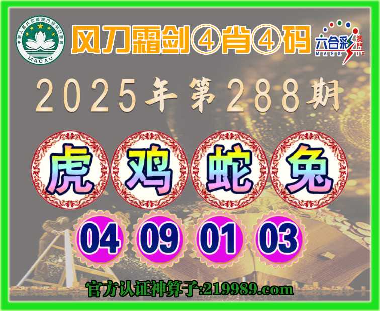 288期:『风刀霜剑』 🌅④肖④码🌅【虎鸡蛇兔】【04.09.01.03】开:00准