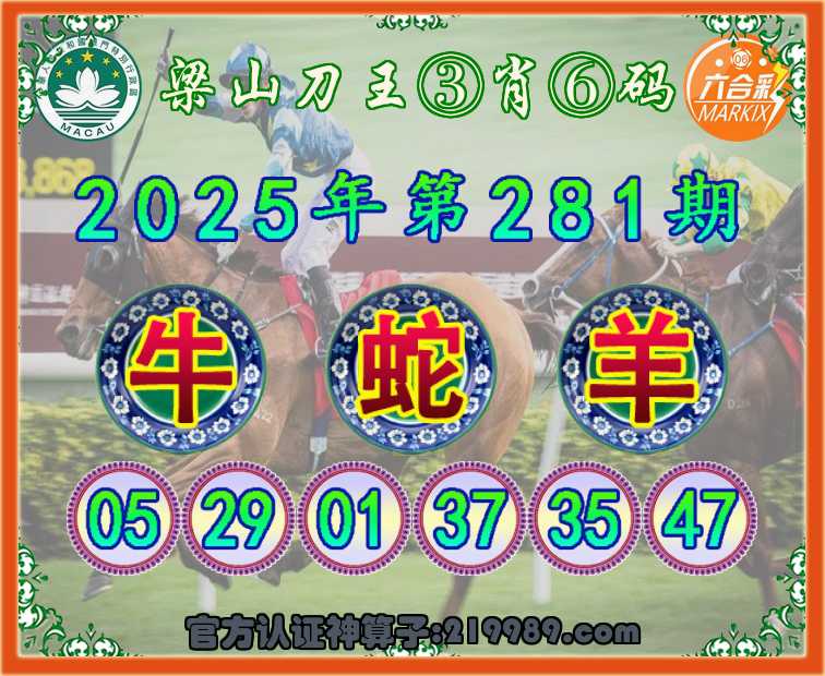 281期:『梁山刀王』 ☺️③肖⑥码☺️【牛蛇】开:羊47