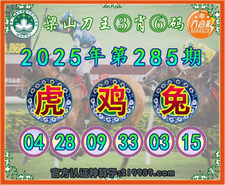 285期:『梁山刀王』 ☺️③肖⑥码☺️【虎鸡兔】开:马24