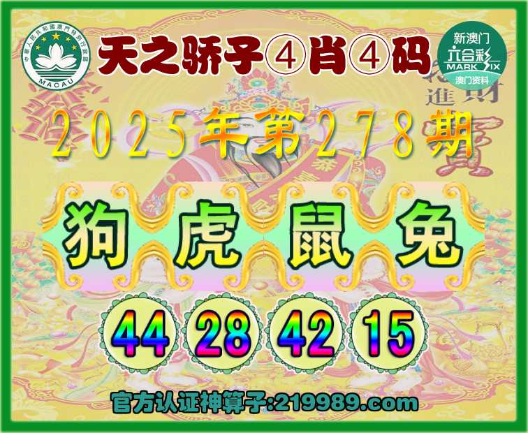 278期: 天之骄子 🏅④肖④码🏅【狗鼠兔】【44.28.42.15】开:虎28