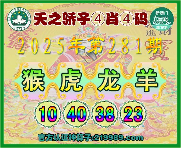 281期: 天之骄子 🏅④肖④码🏅【猴虎龙】【10.40.38.23】开:羊47