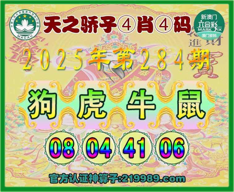 284期: 天之骄子 🏅④肖④码🏅【狗虎鼠】【08.04.41.06】开:牛41