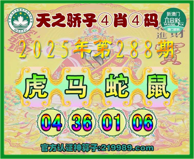 288期: 天之骄子 🏅④肖④码🏅【虎马蛇鼠】【04.36.01.06】开:00准