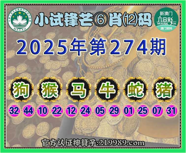 274期:【小试锋芒】 ⛩️⑥肖⑿码⛩️【猴马牛蛇猪】开:狗44