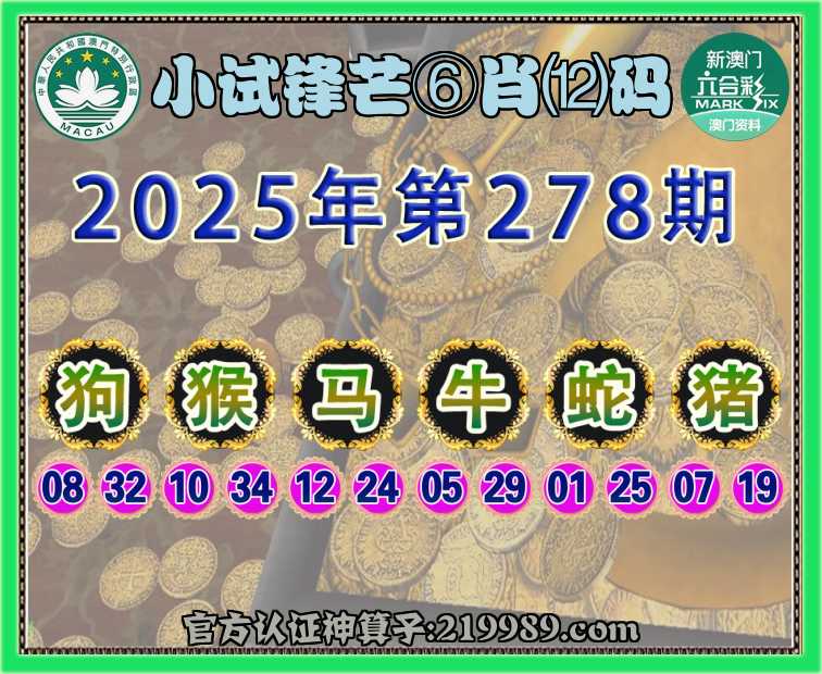 278期:【小试锋芒】 ⛩️⑥肖⑿码⛩️【狗猴马牛蛇猪】开:虎28
