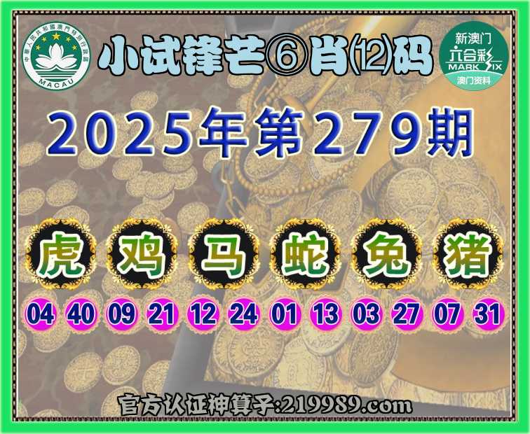 279期:【小试锋芒】 ⛩️⑥肖⑿码⛩️【虎鸡马蛇猪】开:兔27