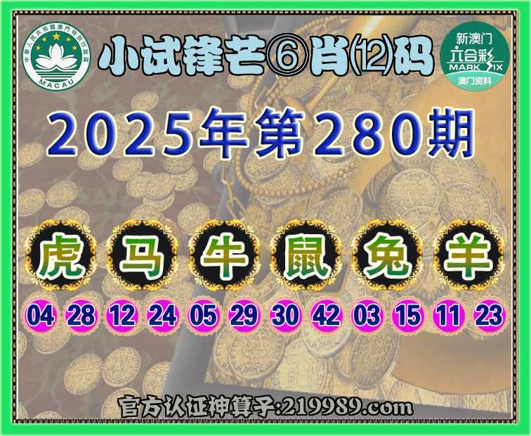 280期:【小试锋芒】 ⛩️⑥肖⑿码⛩️【虎马牛兔羊】开:鼠42