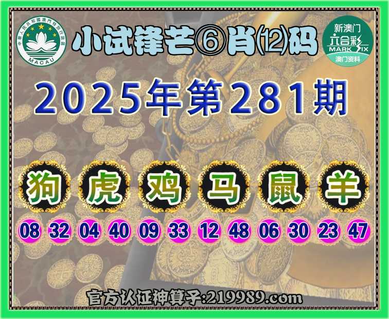 281期:【小试锋芒】 ⛩️⑥肖⑿码⛩️【狗虎鸡马鼠】开:羊47