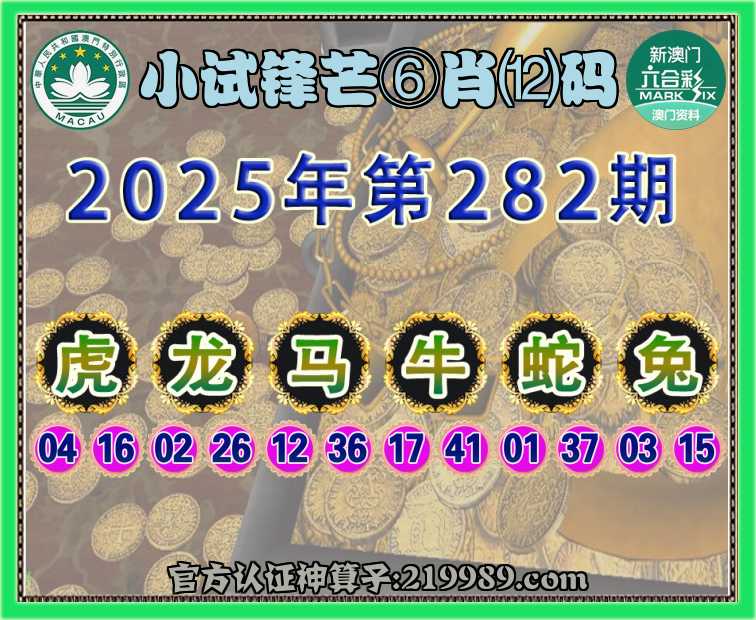 282期:【小试锋芒】 ⛩️⑥肖⑿码⛩️【虎龙马蛇兔】开:牛41