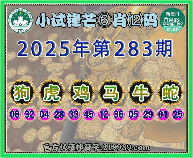 283期:【小试锋芒】 ⛩️⑥肖⑿码⛩️【狗虎马牛蛇】开:鸡45