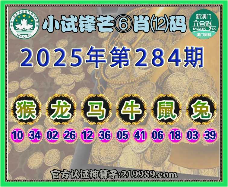 284期:【小试锋芒】 ⛩️⑥肖⑿码⛩️【猴龙马鼠兔】开:牛41