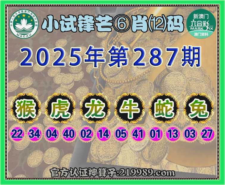 287期:【小试锋芒】 ⛩️⑥肖⑿码⛩️【虎龙牛蛇兔】开:猴34