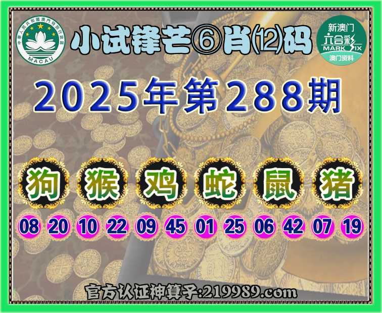 288期:【小试锋芒】 ⛩️⑥肖⑿码⛩️【狗猴鸡蛇鼠猪】开:00准