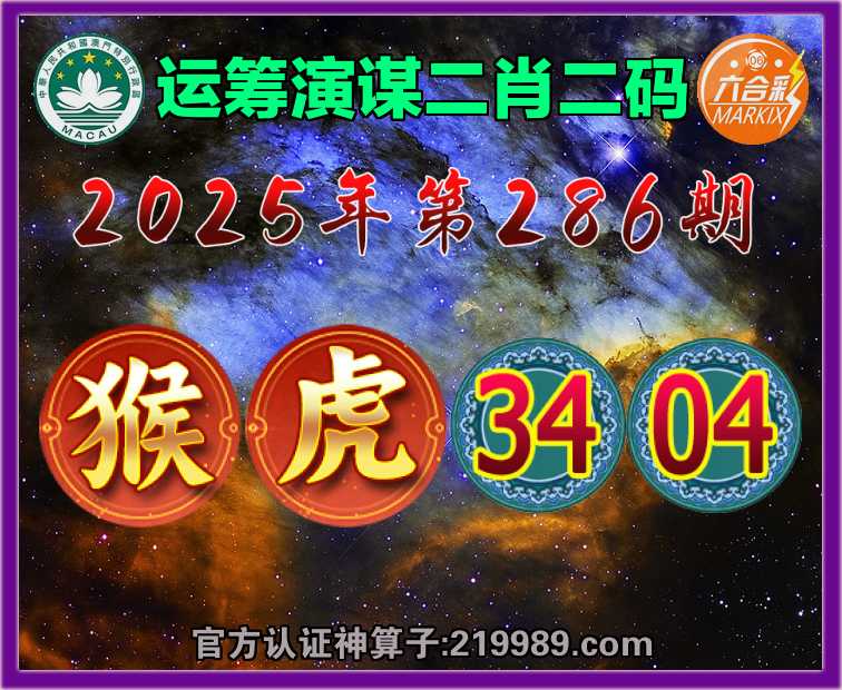 286期:『运筹演谋』 📸二肖二码📸【猴虎】【34.04】开:兔03