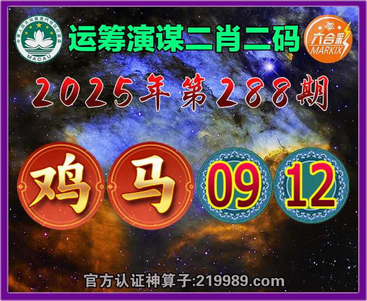 288期:『运筹演谋』 📸二肖二码📸【鸡马】【09.12】开:00准