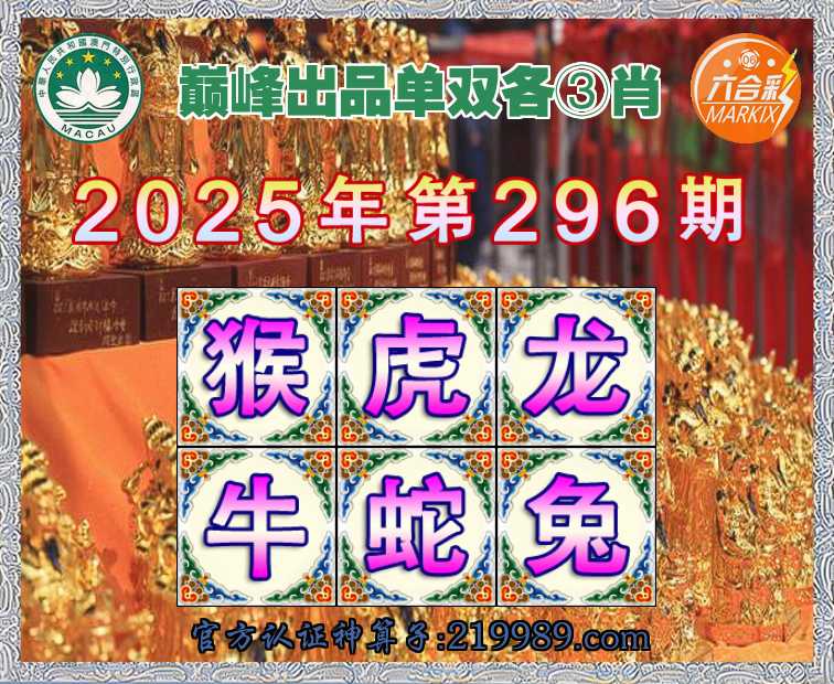 296期: 巅峰出品 🗡单双各③肖🗡【.虎.龙.牛.蛇.兔】开:猴22