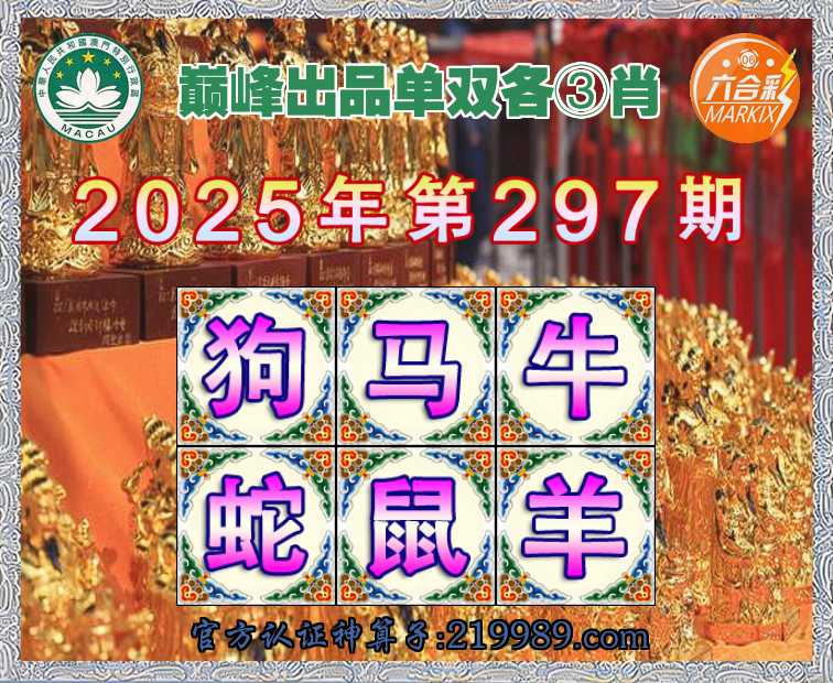297期: 巅峰出品 🗡单双各③肖🗡【.马.牛.蛇.鼠.羊】开:狗44