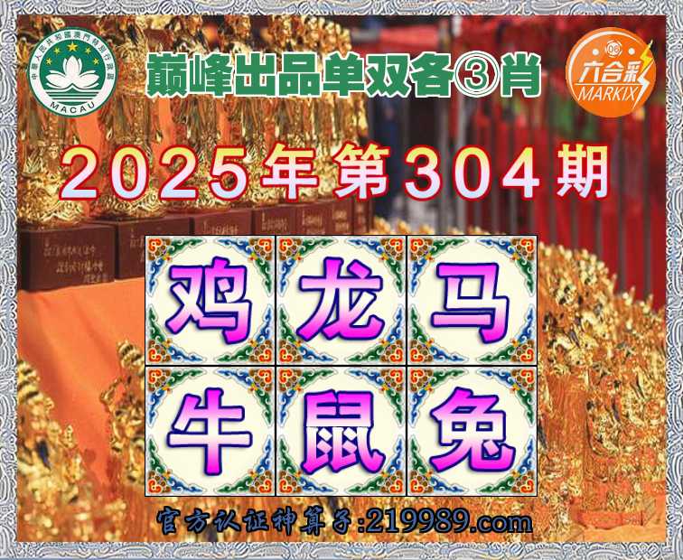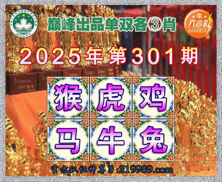 301期: 巅峰出品 🗡单双各③肖🗡【猴.虎.鸡.马..兔】开:牛05