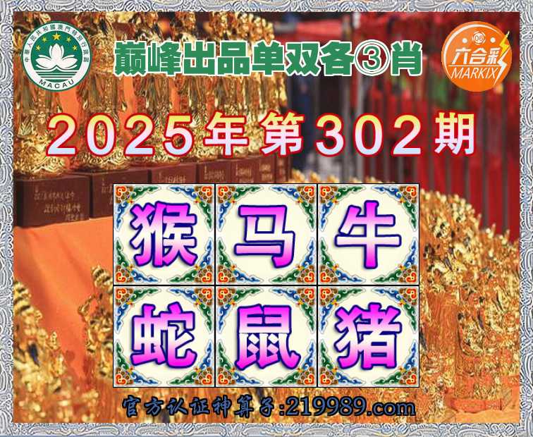 302期: 巅峰出品 🗡单双各③肖🗡【.马.牛.蛇.鼠.猪】开:猴22