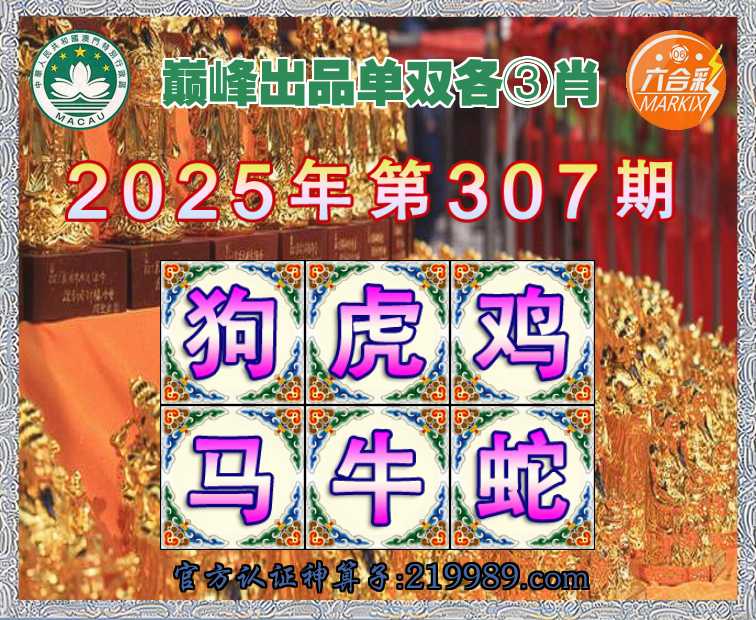 307期: 巅峰出品 🗡单双各③肖🗡【.虎.鸡.马.牛.蛇】开:狗20