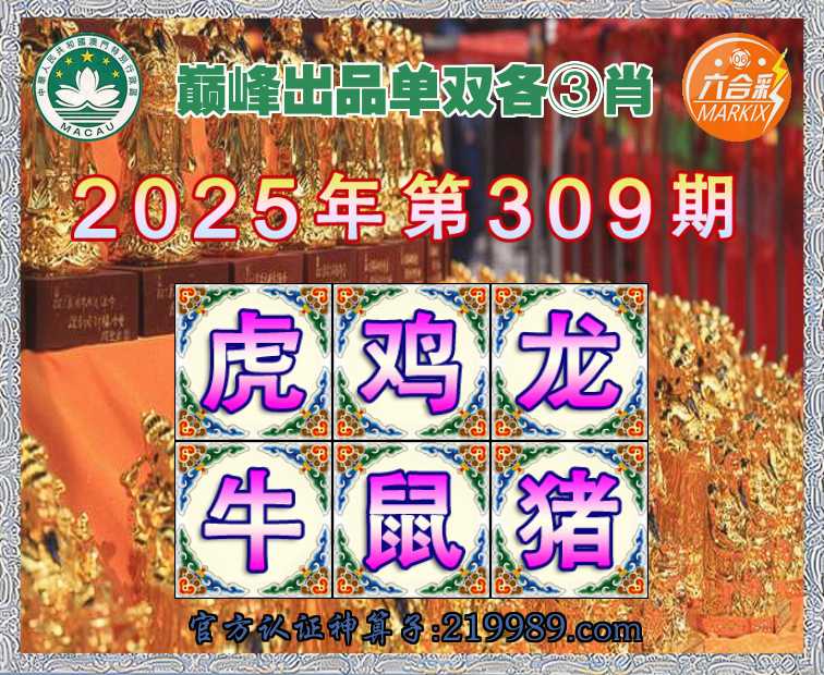 309期: 巅峰出品 🗡单双各③肖🗡【虎.鸡.龙.牛.鼠.猪】开:00准