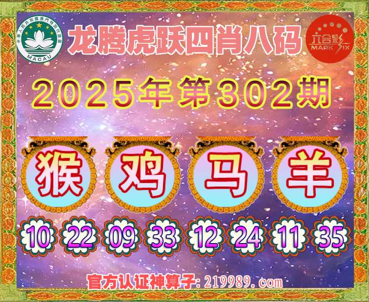 302期:『龙腾虎跃』 🎖️四肖八码🎖️【鸡马羊】开:猴22