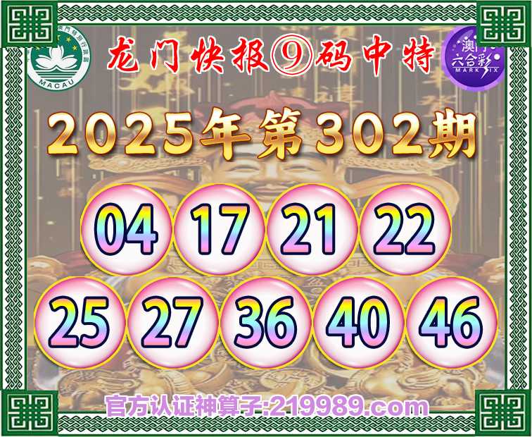 302期: 😳《龙门快报》 😳⑨码中特😳开:22
