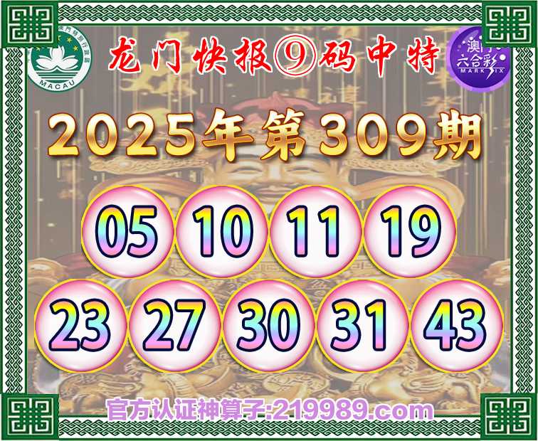 309期: 😳《龙门快报》 😳⑨码中特😳开:00准