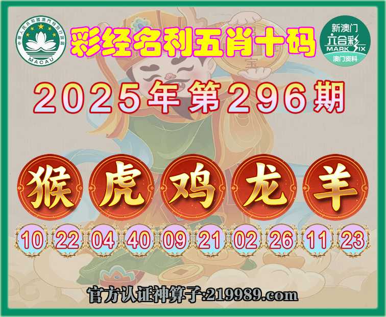 296期: 🀄《彩经名利》 🀄五肖十码🀄【虎鸡龙羊】开:猴22