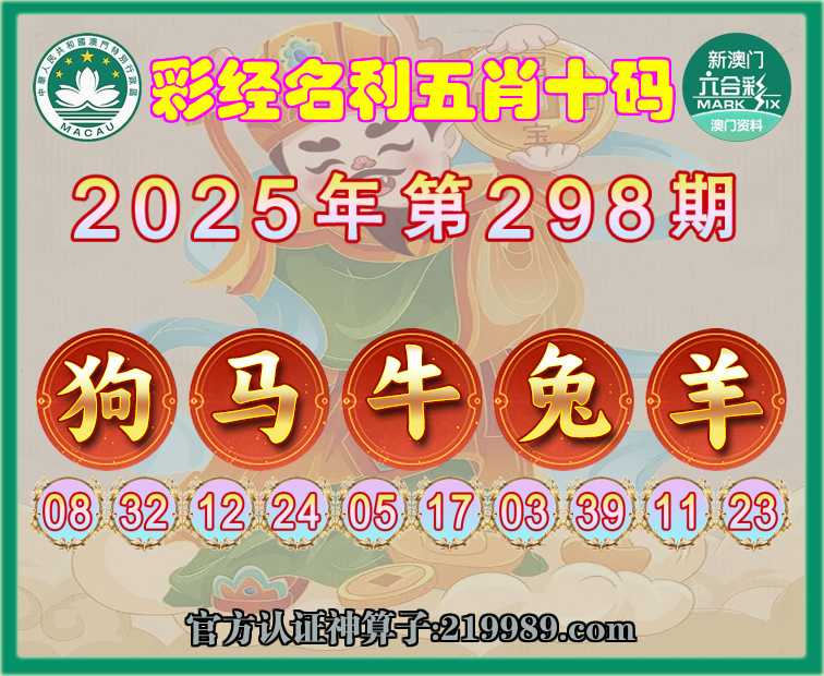 298期: 🀄《彩经名利》 🀄五肖十码🀄【狗马牛兔】开:羊23