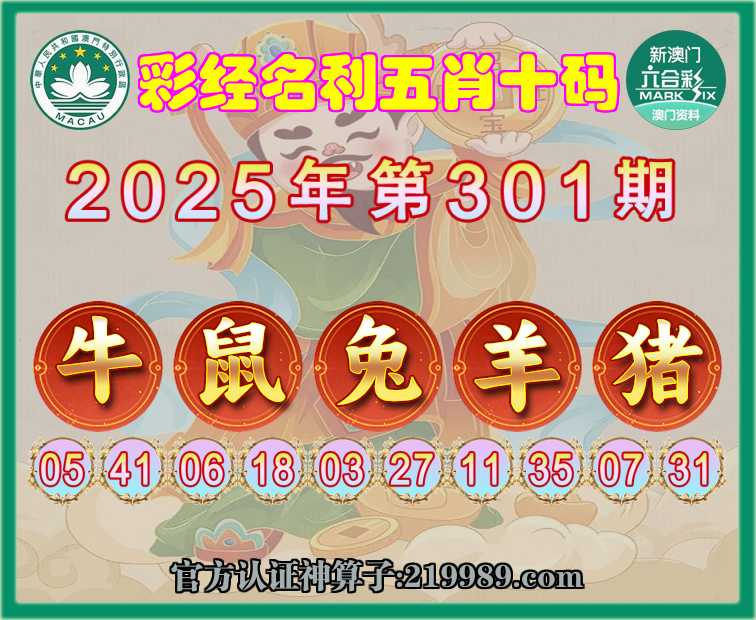 301期: 🀄《彩经名利》 🀄五肖十码🀄【鼠兔羊猪】开:牛05