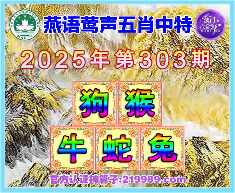 303期:【燕语莺声】 🥩五肖中特🥩【狗.猴.牛.蛇.】开:兔15