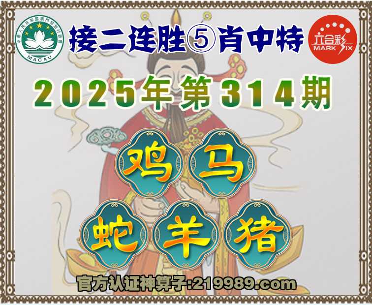 314期:〖接二连胜〗 🀄⑤肖中特🀄【鸡.马.蛇..猪】开:羊23