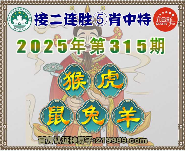 315期:〖接二连胜〗 🀄⑤肖中特🀄【猴..鼠.兔.羊】开:虎04
