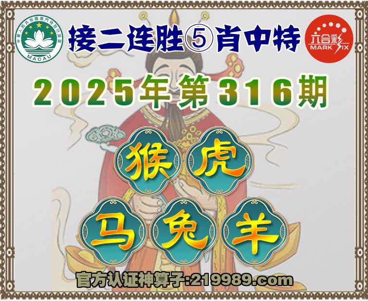 316期:〖接二连胜〗 🀄⑤肖中特🀄【猴.虎.马.兔.羊】开:00准
