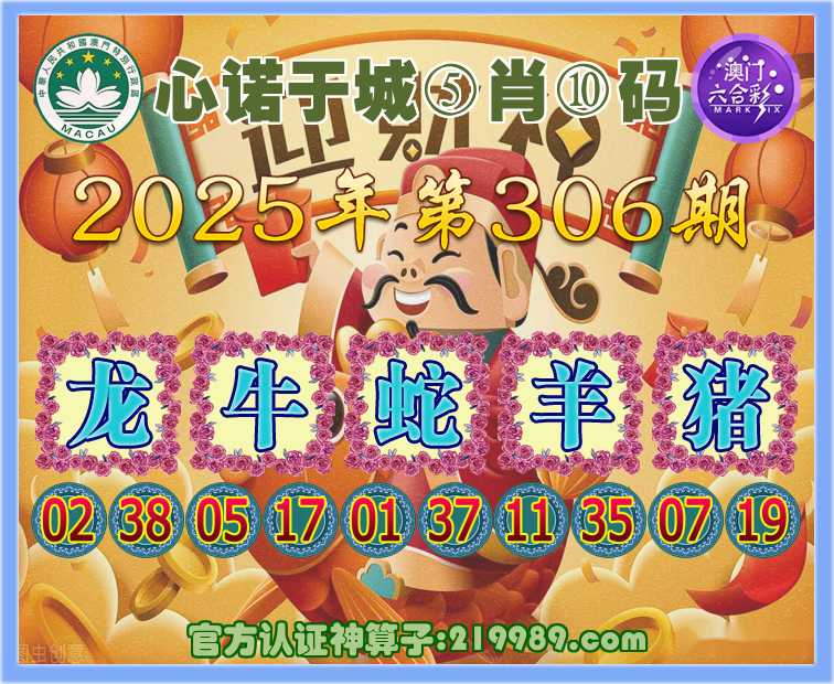 306期:『心诺于城』 👛⑤肖⑩码👛【龙蛇羊猪】开:牛17