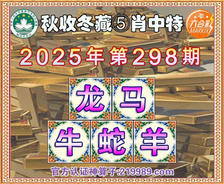 298期: 🧩『秋收冬藏』 🧩⑤肖中特🧩【龙.马.牛.蛇.】开:羊23