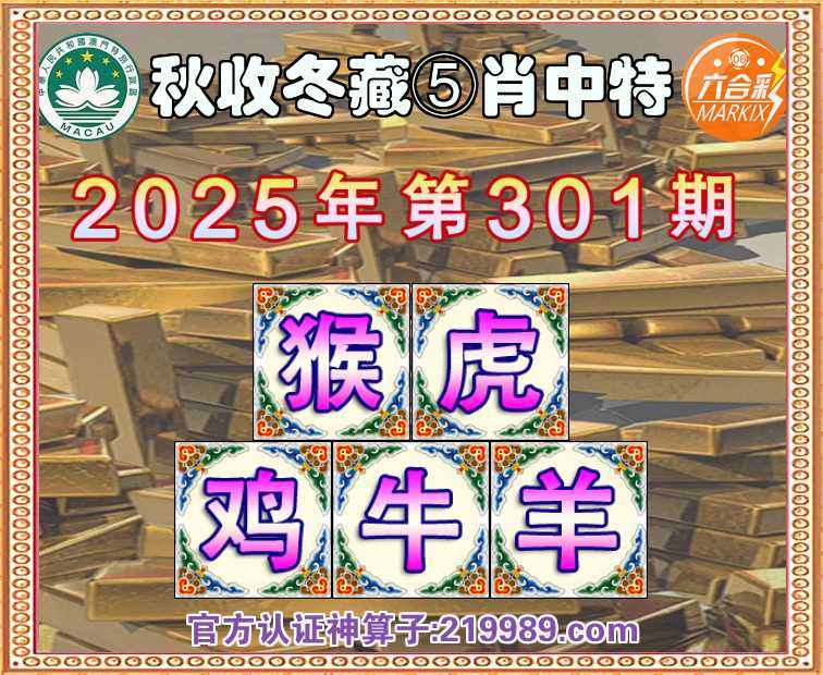 301期: 🧩『秋收冬藏』 🧩⑤肖中特🧩【猴.虎.鸡..羊】开:牛05