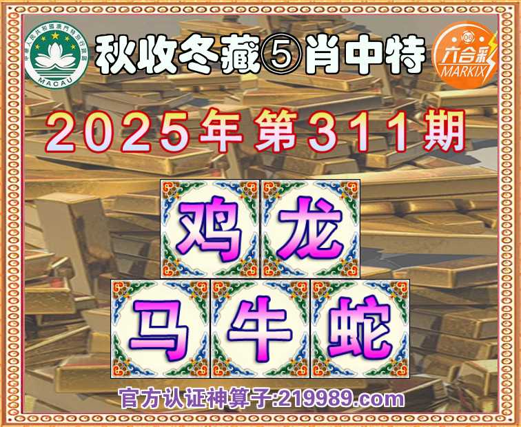 311期: 🧩『秋收冬藏』 🧩⑤肖中特🧩【鸡.龙.马.牛.】开:蛇37