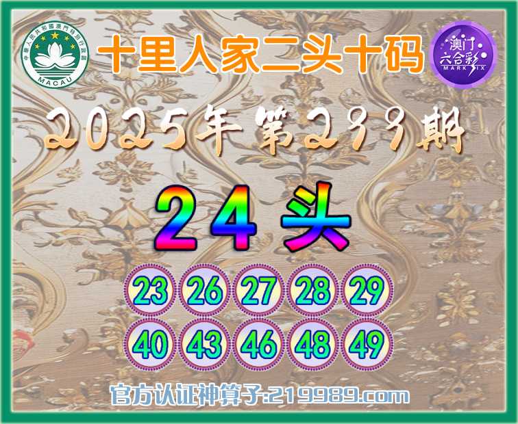299期:《十里人家》 🥧二头十码🥧【24头】开:49
