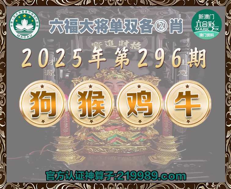 296期:《六福大将》 🍙单双各②肖🍙【狗..鸡.牛】开:猴22