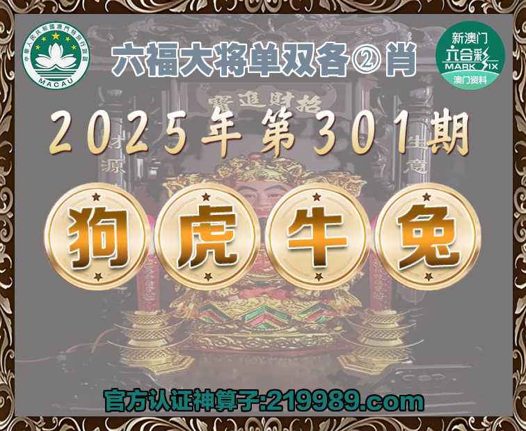 301期:《六福大将》 🍙单双各②肖🍙【狗.虎..兔】开:牛05