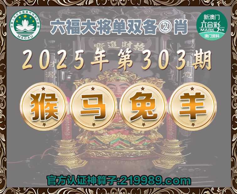 303期:《六福大将》 🍙单双各②肖🍙【猴.马..羊】开:兔15