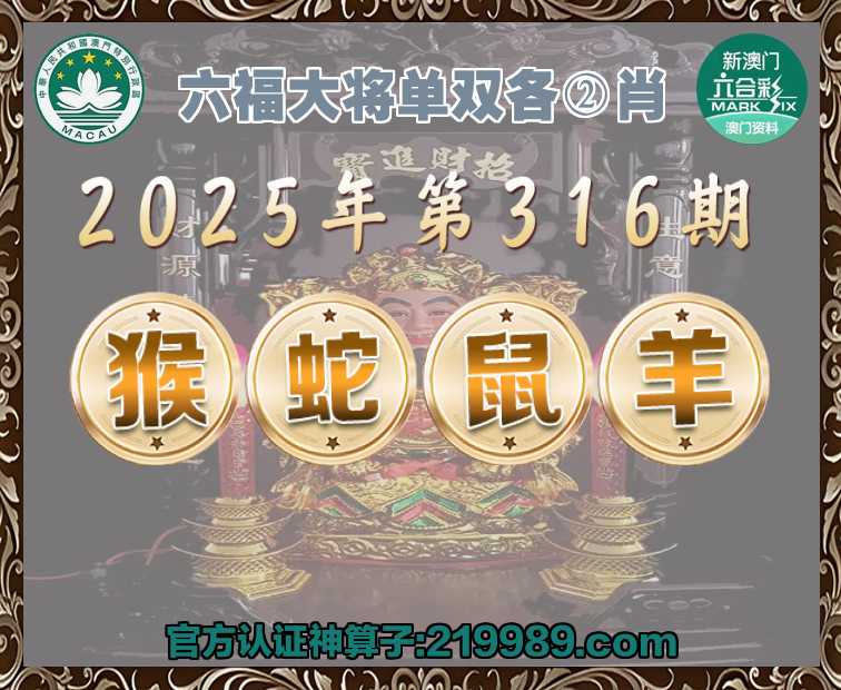 316期:《六福大将》 🍙单双各②肖🍙【猴.蛇.鼠.羊】开:00准