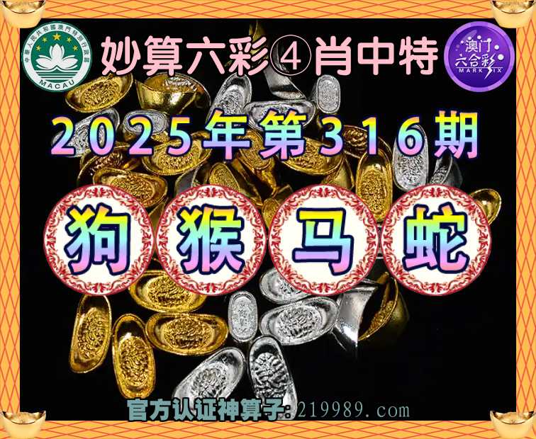 316期:《妙算六彩》 🩴④肖中特🩴【狗.猴.马.蛇】开:00准