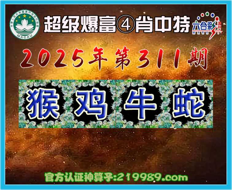 311期: 超级爆富 😍④肖中特😍【猴.鸡.牛.】开:蛇37