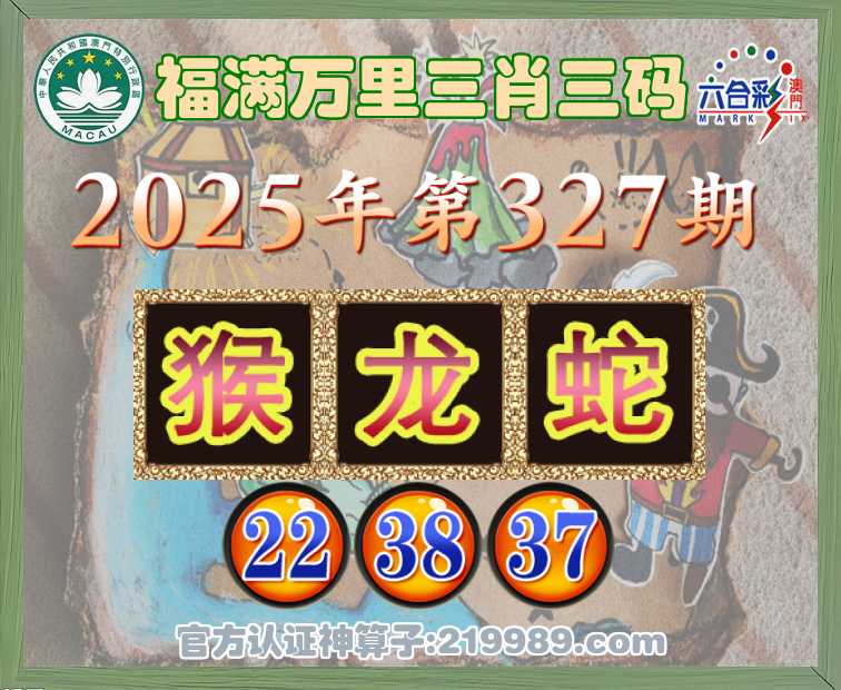 327期:〖福满万里〗  ♣️三肖三码 ♣️【猴龙】【22.38.37】开:蛇37